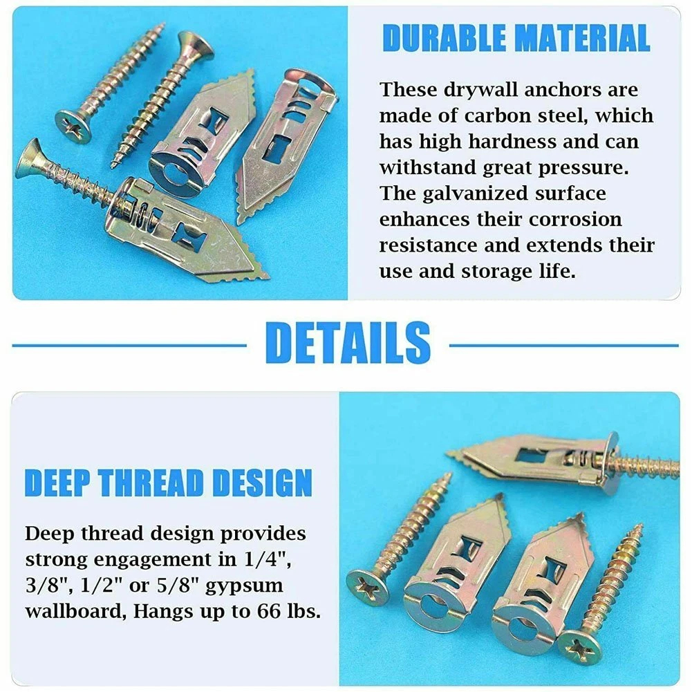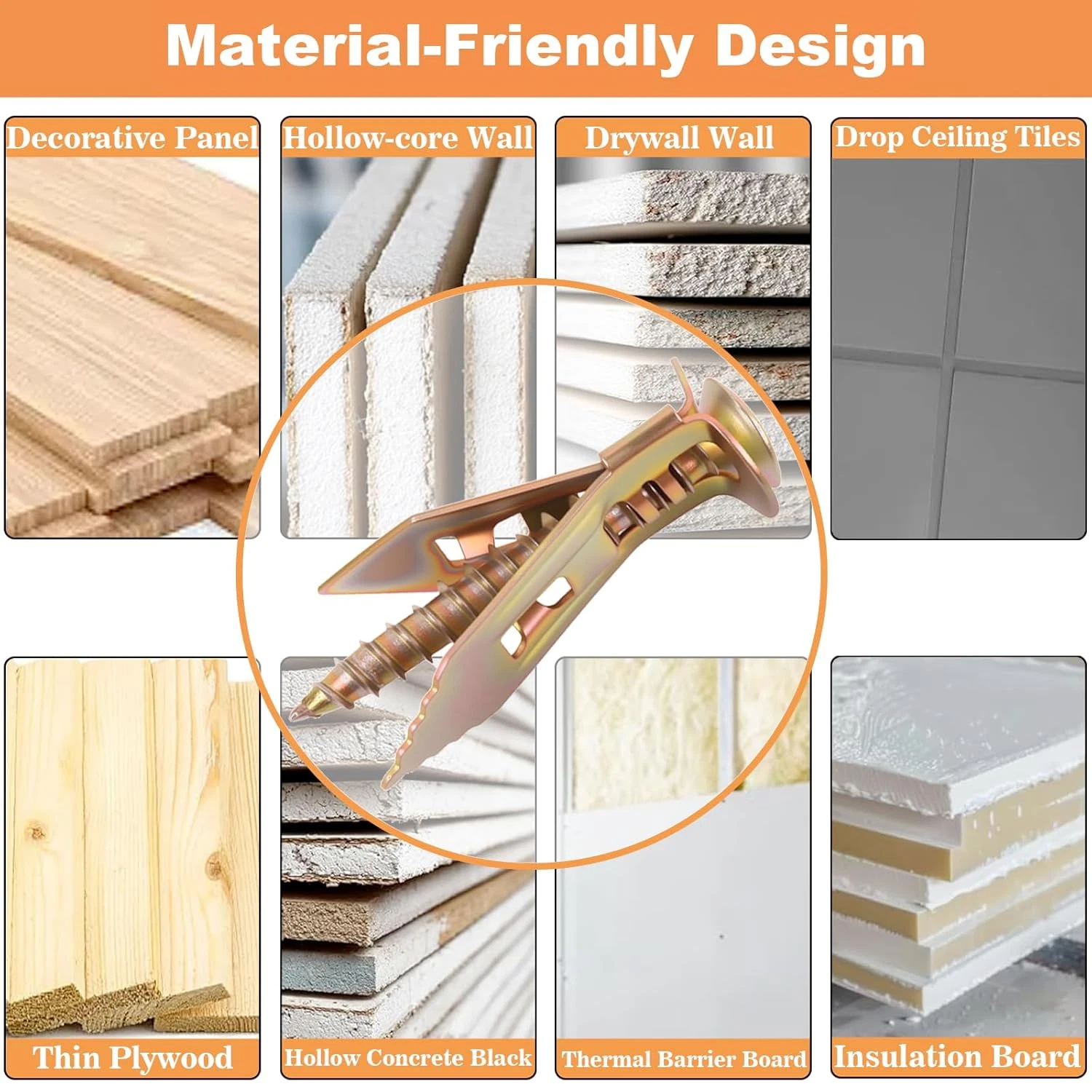• Self Drilling Feature :These drywall anchors feature a self-drilling design, making installation quick and easy. Ideal for heavy-duty applications, they provide secure fastening without the need for traditional drilling tools.